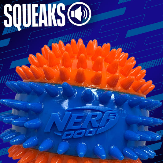 Squeaky Dental Spike Ball Dog Toy, Orange/Blue, 2.7 Inch